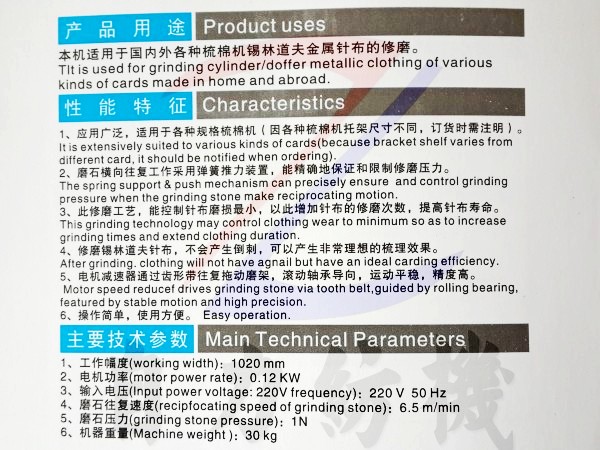 FU296往復(fù)磨針布機的產(chǎn)品詳細(xì)介紹: