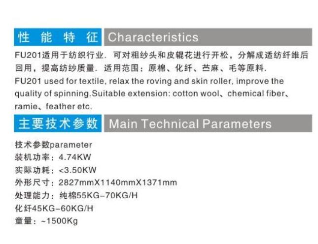 FU201型粗紗頭開松機(針板開松)的產(chǎn)品詳細(xì)介紹: